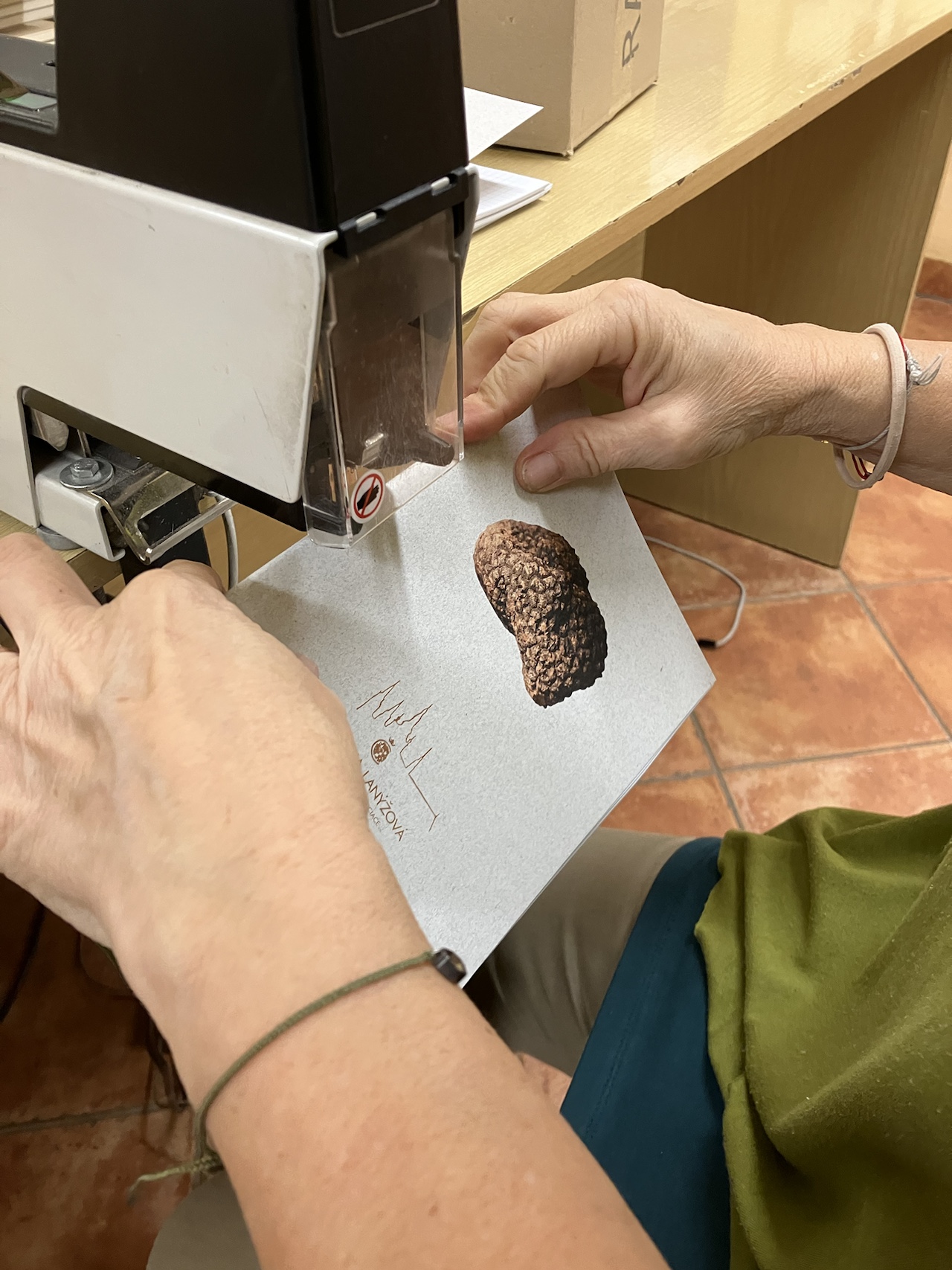 Chráněná dílna Lemniskáta i pro letošní ročník Prahy lanýžové připravila jedinečný deník z ručního papíru, vyrobeného ze lnu a konopí, který navíc obsahuje mycelium lanýže burgundského i malý kousek lanýže samotného.